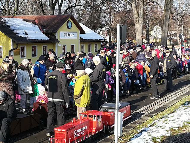 Bei herrlich sonnigem, aber frischem, Wetter hat auch heuer wieder der Nikolaus die Kinder beim Dampfbahnclub Graz besucht und viele Packerl mitgebracht.